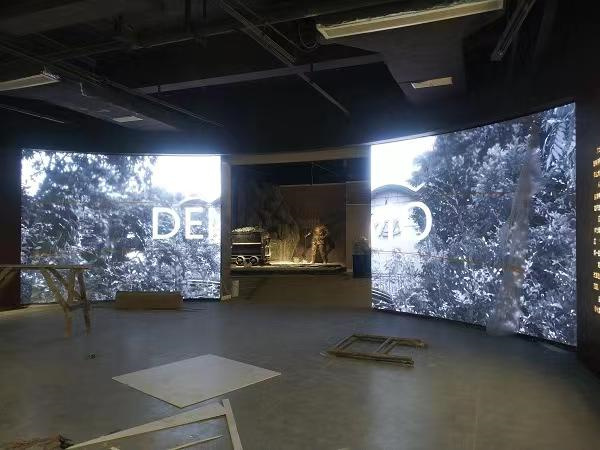 重庆长安福特汽车工业展厅P2弧形对开门高清显示屏