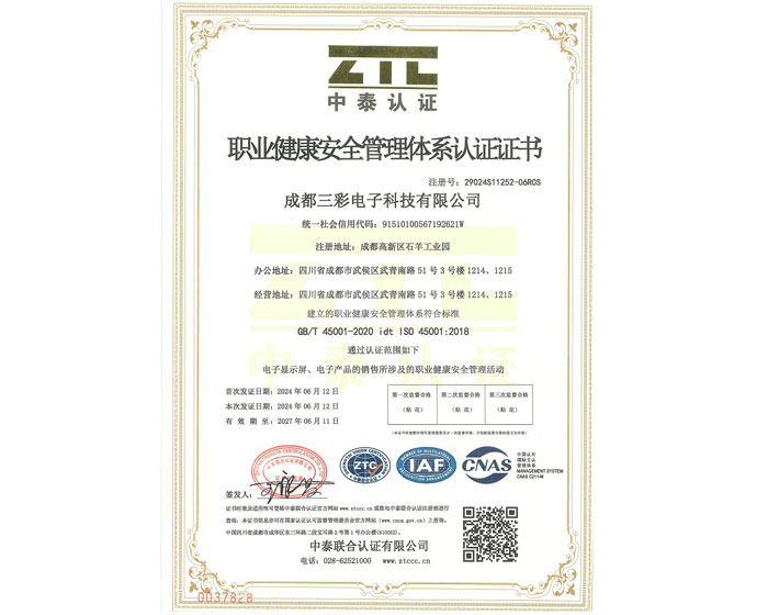 职业健康管理体系证书